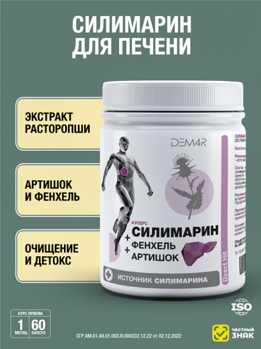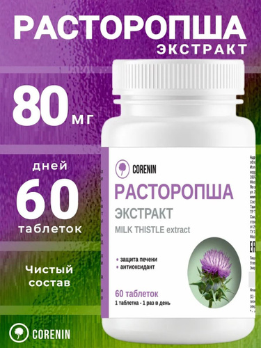 Расторопша экстракт силимарин 80 мг для печени и детоксикации организма. 60 таблеток.