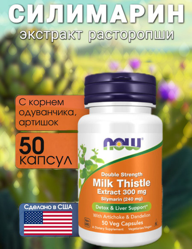 Силимарин NOW Silymarin Milk Thistle 300mg , Комплекс для печени из силимарин и экстракта расторопши, 50 капсул массой 580 мг