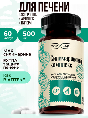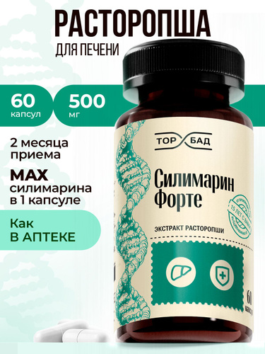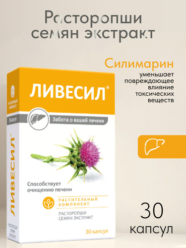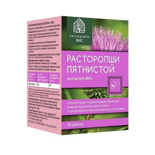 Для печени: Расторопша пятнистая экстракт-ВИС (экстракт плодов расторопши содержит силимарин) 0,4г 30 капсул