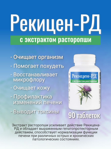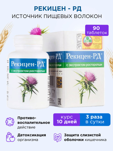 БАД Рекицен-РД с экстрактом расторопши (клетчатка в таблетках очищение кишечника от запора вздутия изжоги для похудения) 90 шт