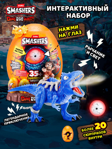 Игровой набор, Большое Яйцо с Динозавром +35 сюрпризов ZURU Smashers Dino Egg Hunt, игрушки для мальчиков, 3+, 74133