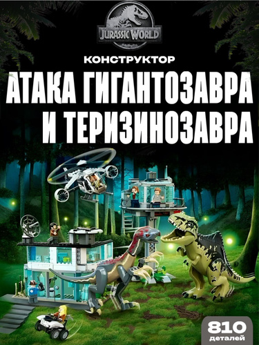 Конструктор Jurassic World / Атака гиганотозавра и теризинозавра, 810 деталь / 76949