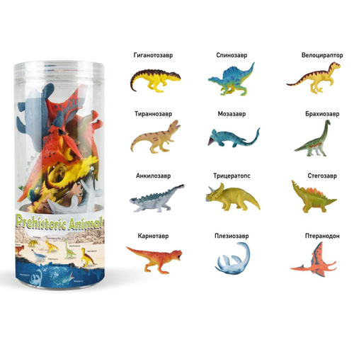 Набор больших фигурок Мир Динозавров, 12 шт. в тубе, Recur