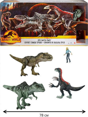 Динозавр Mattel Jurassic World - Эптческая Битва 3 динозавра + доктор Элли HJK02
