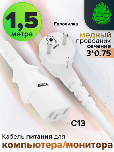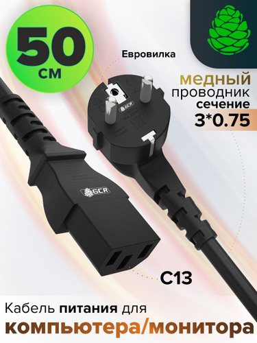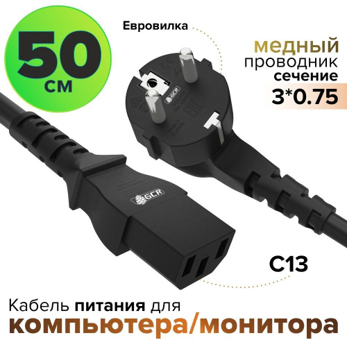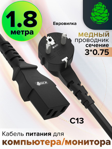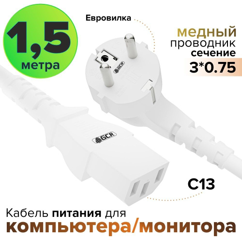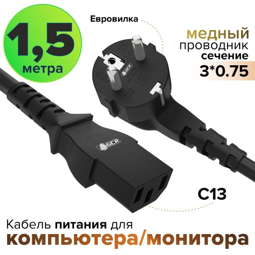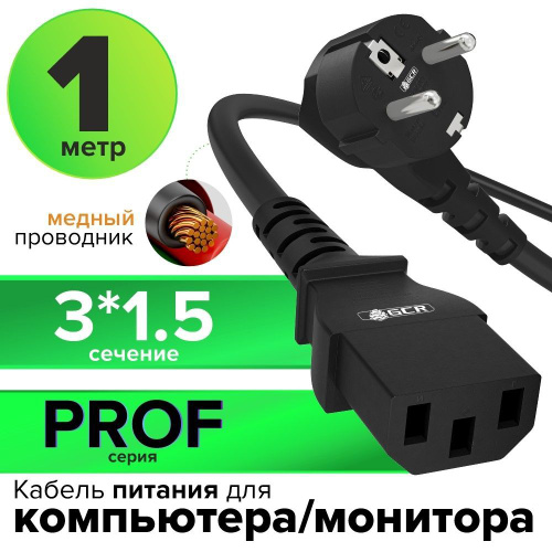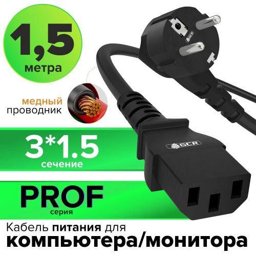 Провод питания GCR 1,5 метра сечение 3 x 0,75 мм кабель питания с13 евро вилка 220 V черный сетевой кабель для блока питания пк