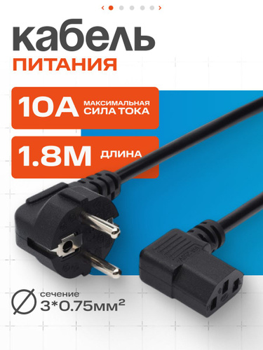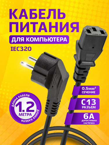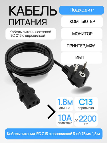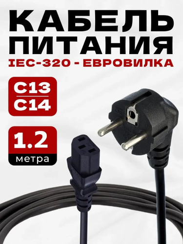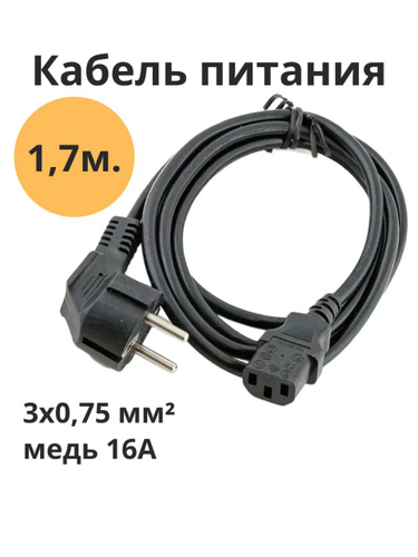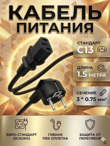 Кабель питания C13 1.5 м, сетевой шнур для ПК, монитора, блока питания, ИБП, серверов, черный