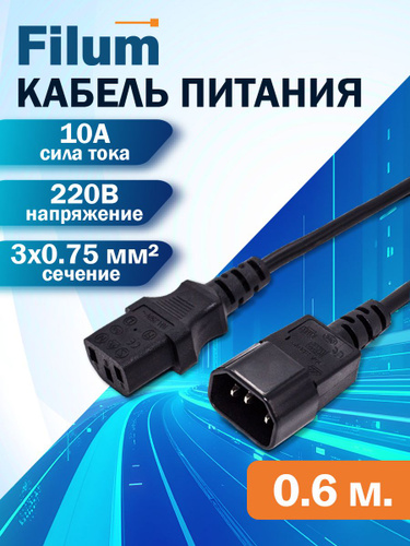 Кабель питания Filum FL-PC10-C13-C14-0.6M