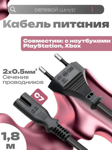 Кабель питания EURO-вилка, тип IEC320, разъёмы ICE C13 прямой - Евровилка, 1.8м