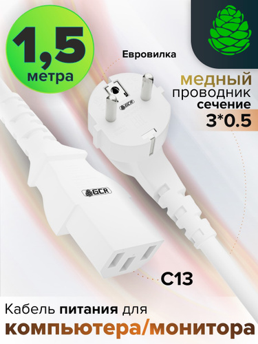 Кабель питания 1,5 метра сечение 3 x 0,5 мм евровилка угловая Schuko разъем C13 кабель GCR 220В белый провод для блока питания пк, для микроволновой печи