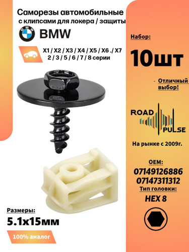 Клипсы БМВ, с саморезами, 07147311312, Road Pulse