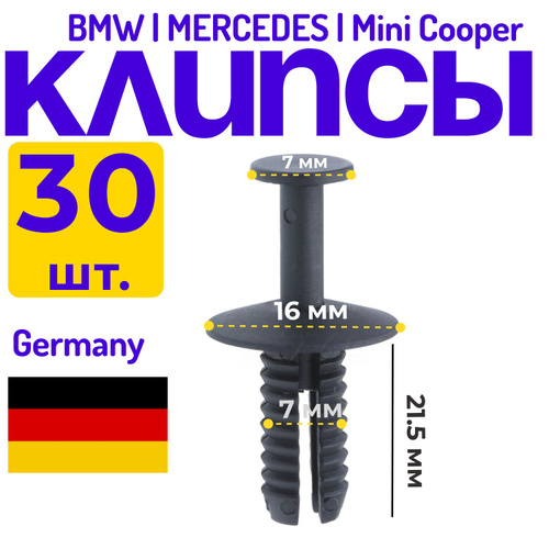 Клипсы для автомобиля крепежные пистоны набор 30 шт на BMW MERCEDES Mini Cooper
