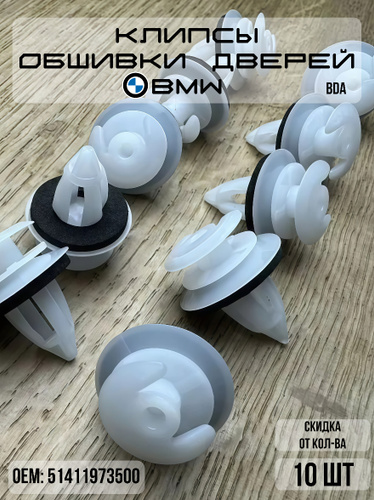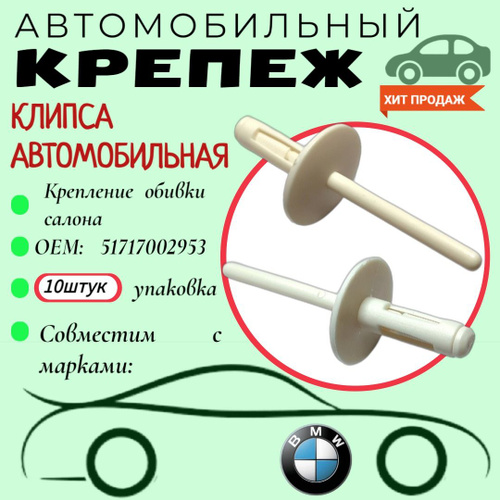 10шт. Клипса для автомобилей BMW (OEM: 51717002953). Крепеж для автомобилей. Заклёпка вытяжная белая.