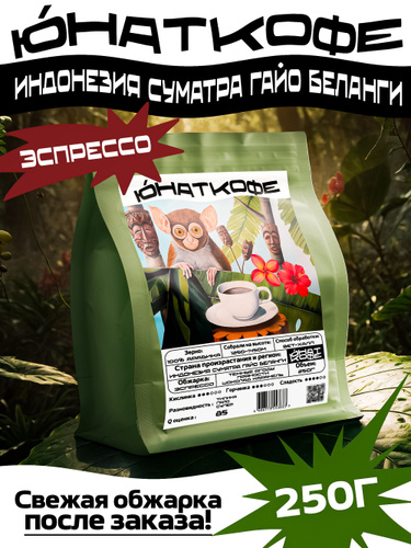 Кофе в зернах Юнат Кофе Индонезия Суматра Гайо Беланги, 100% арабика, обжарим перед отправкой, 250гр, средняя обжарка