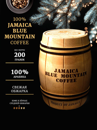 Кофе в зернах,100% Ямайка Блю Маунтин (Jamaica Blue Mountain), средняя обжарка, бочонок, 200 г.