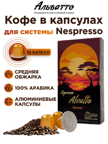 Кофе в алюминиевых капсулах Альватто Кения - 10шт.