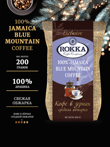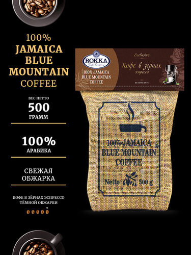 Кофе в зернах "Рокка" 100% Ямайка Блю Маунтин (Jamaica Blue Mountain), темная обжарка, 500 г.