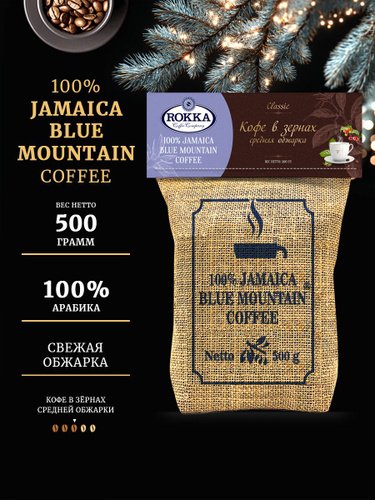 Кофе в зернах "Рокка" 100% Ямайка Блю Маунтин (Jamaica Blue Mountain), средняя обжарка, 500 г.
