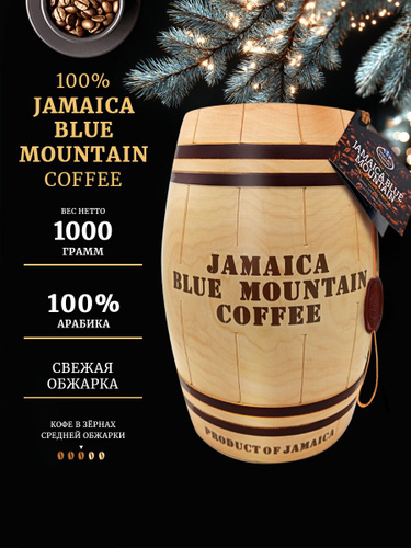 Кофе зерновой в подарочном бочонке 100% Ямайка Блю Маунтин (Jamaica Blue Mountain), средняя обжарка, 1 кг.