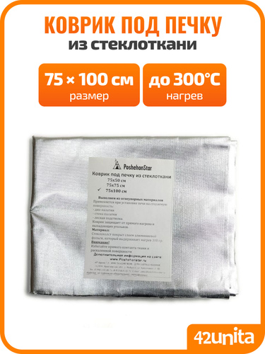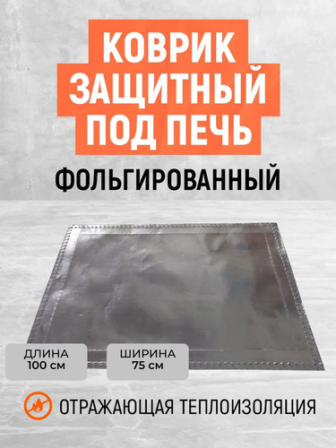 Огнеупорный коврик под печь, камин, в палатку. Фольгированный. Размер 100х75 см.