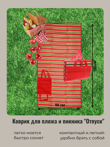 Коврик для пляжа, "Отпуск" коврик для пикника, складной, 180*90 см, красный