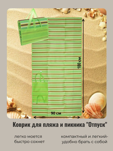 Коврик для пляжа, "Отпуск" коврик для пикника, складной, 180*90 см, зеленый
