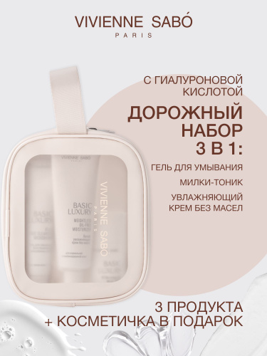 Vivienne Sabo Skincare Дорожный набор Basic Luxury 3-в-1: гель для умывания, милки-тоник, увлажняющий крем