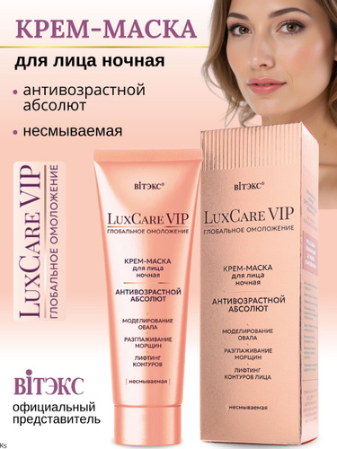 Витэкс LUX CARE VIP КРЕМ-МАСКА для лица Ночная несмываемая АНТИВОЗРАСТНОЙ АБСОЛЮТ, 75 мл