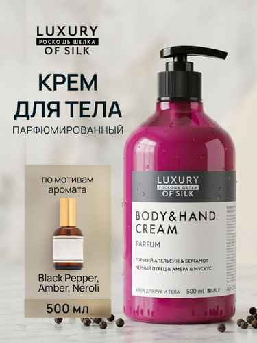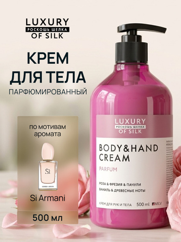 LUXURY OF SILK.Парфюмированный восстанавливающий крем для рук и тела с маслом авокадо. 500 мл
