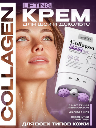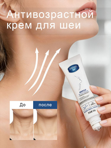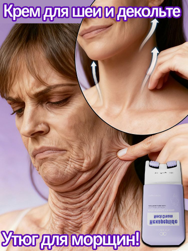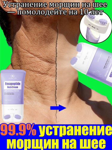 Крем для лица от морщин на шее с массажером в комплекте, содержит гексапептид, антивозрастной эффект