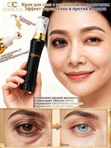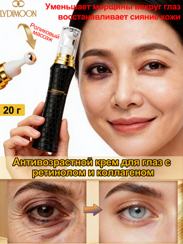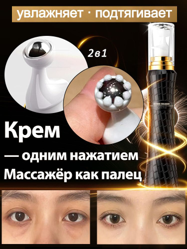 Крем роллер для ухода за кожей вокруг глаз с массажными роликами,разглаживающим и антивозрастным эффектом,с коллагеном и ретинолом,для век и зоны вокруг глаз 20 г