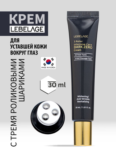 LEBELAGE Крем для век от отёков и мешков под глазами, Корея. 3 Roller Intensive Care Dark Zero Cream, 30ml. Уходовая антивозрастная корейская косметика