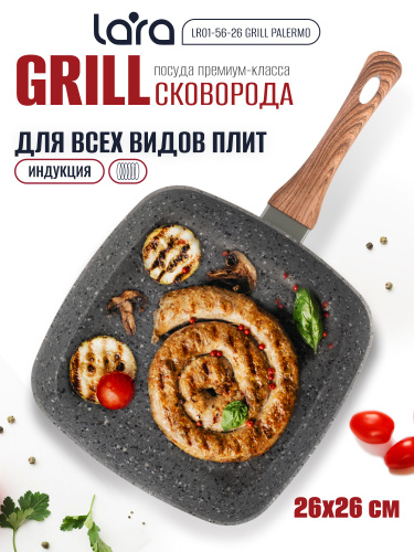 Сковорода LR01-56-26 GRILL PALERMO гриль 26см