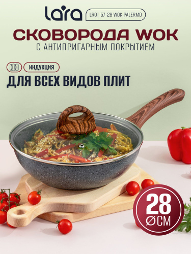 Сковорода Вок с крышкой 28 см для всех видов плит, включая индукционную LARA.