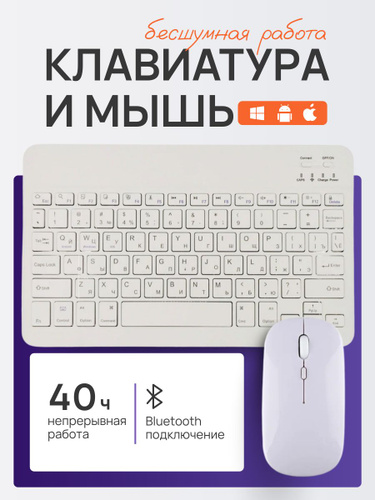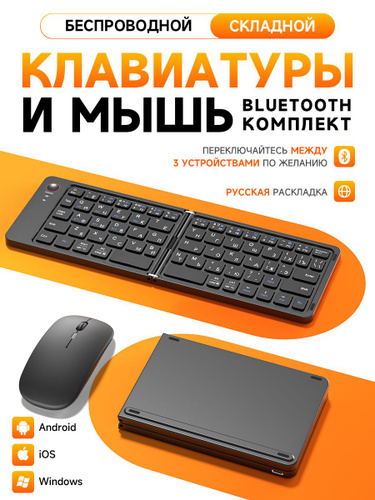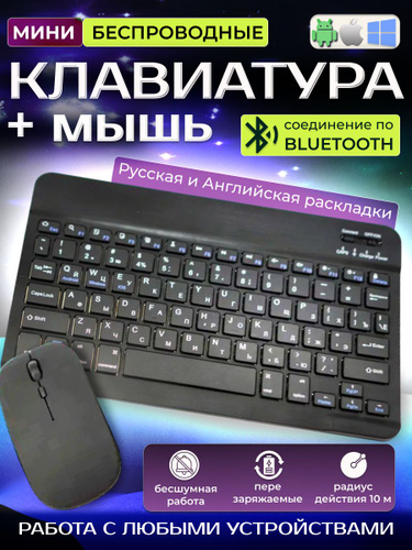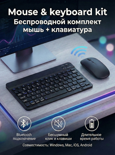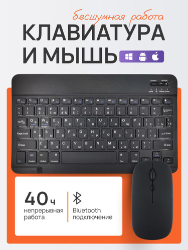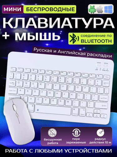 Беспроводная клавиатура и мышь Bluetooth для планшета, компьютера, телефона. Совместимость с iOS, Windows, Android