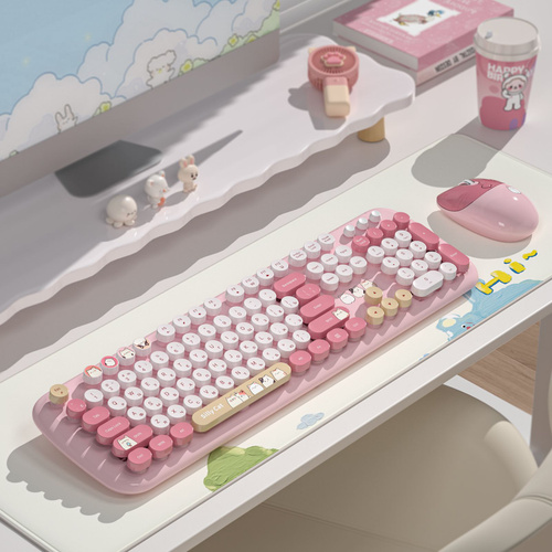 Беспроводной набор MOFii, клавиатура и мышь, русская раскладка, 104 клавиш, 800/1200/1600 dpi, с котиками, розовая