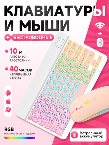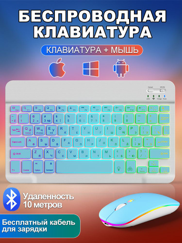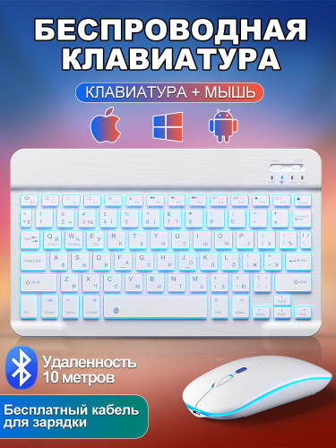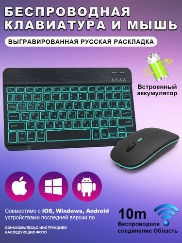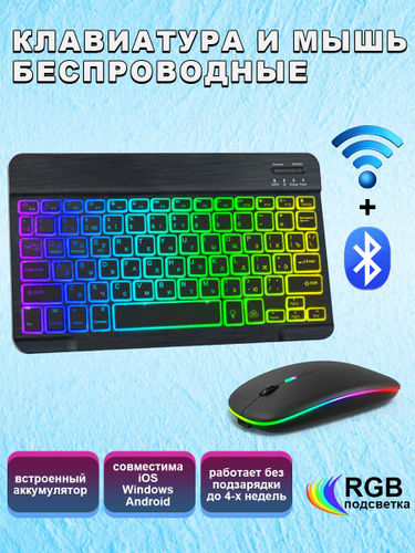Клавиатура и мышь беспроводные с подсветкой, bluetooth клавиатура и мышь для планшета, для телефона, компьютера и офисных игровой