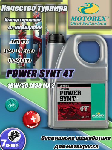 MOTOREX MOTOREX POWER SYNT 4T 50W Масло моторное, Синтетическое, 4 л