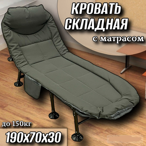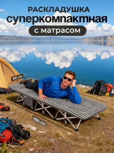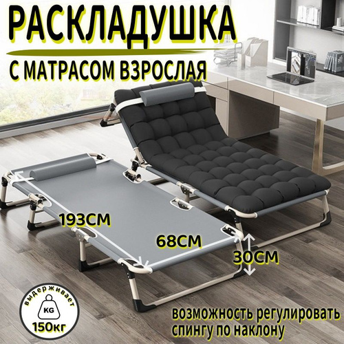 раскладушка с матрасом туристическая взрослая для сна до 150кг