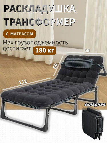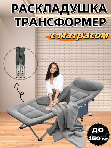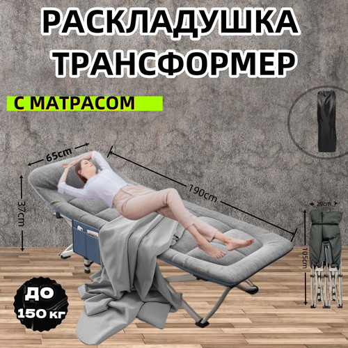 Раскладушка с матрасом взрослая туристическая для сна трафсформер до 150кг
