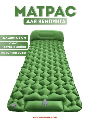 Коврик самонадувающийся 5 см надувной туристический, походный малахит