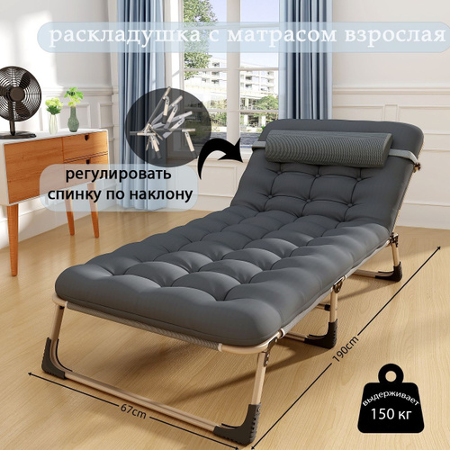 раскладушка с матрасом взрослая до 150 кг 190*68/ туристическая раскладушка взрослая