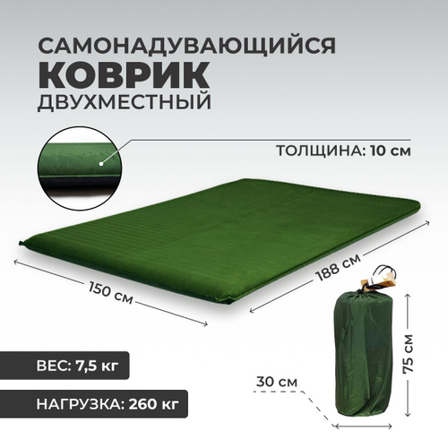 Коврик самонадувающийся туристический двухместный в палатку для кемпинга, 10 см толщина