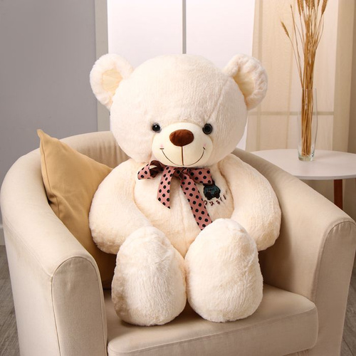 Мягкая игрушка КНР Мишка с бантом в горошек, высота 100 см, белый
