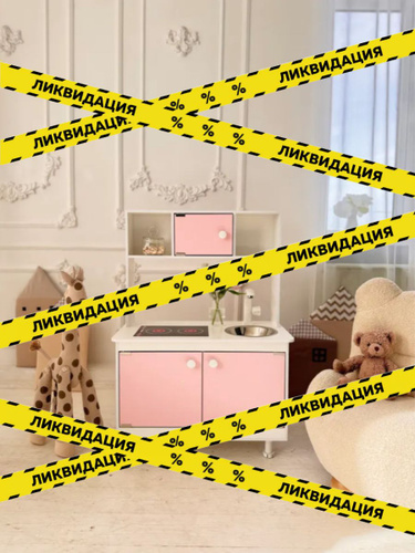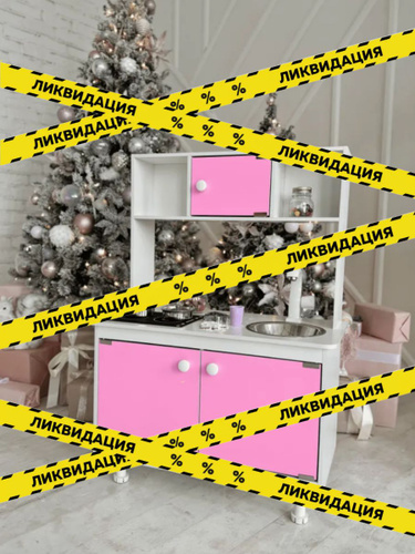 Детская кухня Sitstep с имитацией плиты - наклейкой, без света и звука, розовые фасады, 105 х 70 х 38 см