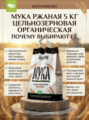 Мука ржаная цельнозерновая 5кг хлебопекарная