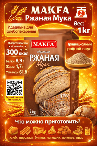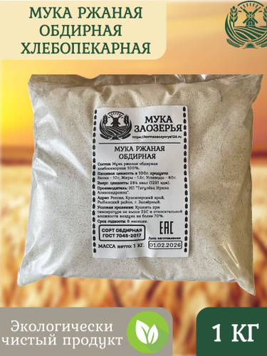 Мука ржаная обдирная 1 кг хлебопекарная Мука Заозёрья