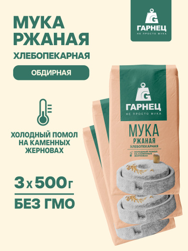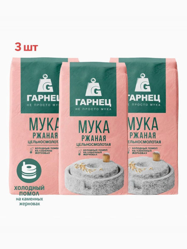 Мука Гарнец Ржаная цельносмолотая 3 шт по 500г
