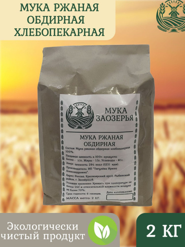 Мука ржаная обдирная 2 кг хлебопекарная Мука Заозёрья