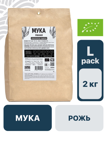 Мука ржаная цельнозерновая 1кг, экопродукт