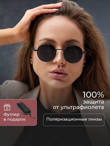 Очки солнцезащитные женские круглые с поляризационно + футляр в подарок / Тишейды модные солнечные очки коллекция 2025 POLARIZED